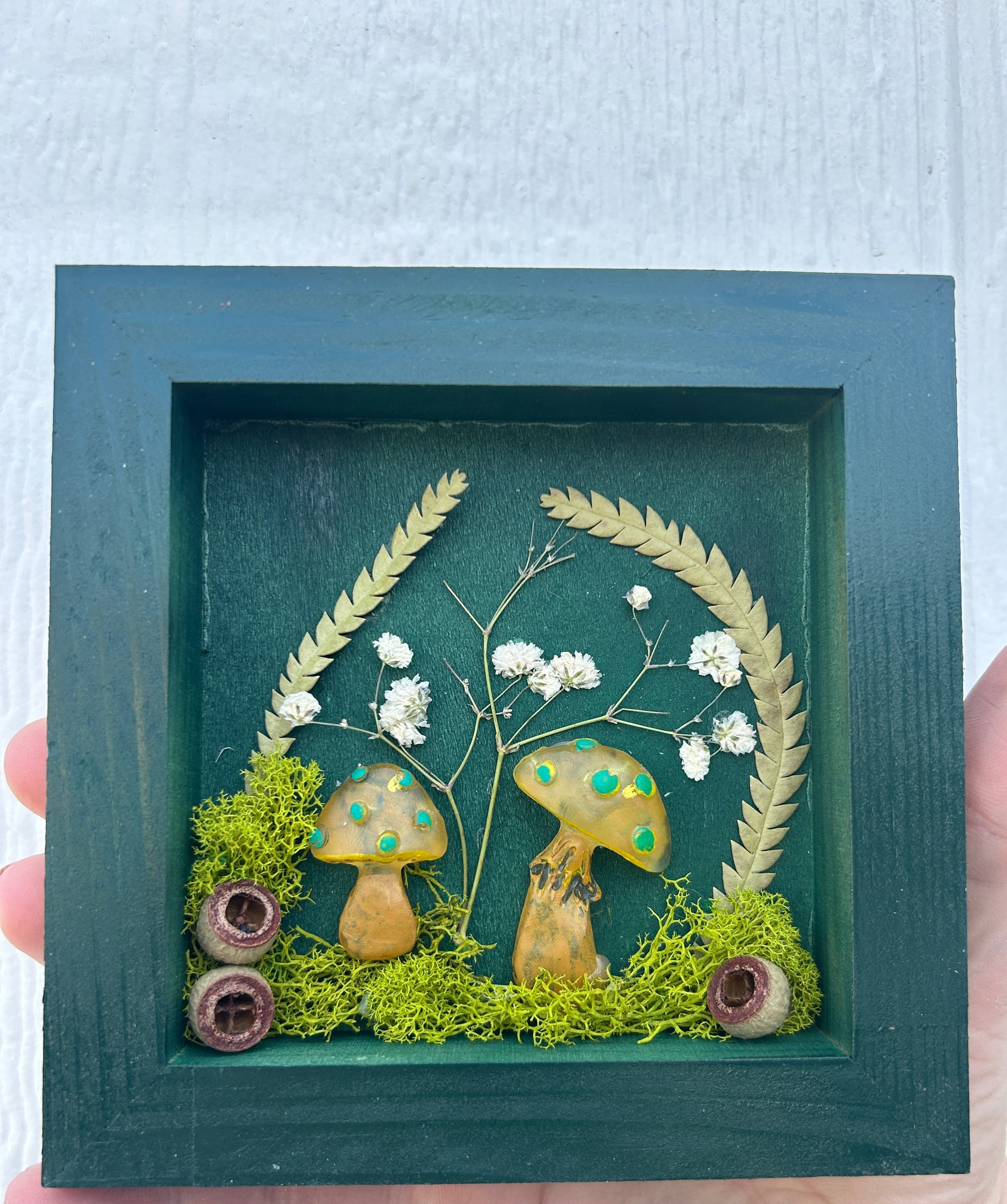 Bring a touch of enchanted woodland beauty into your home with this handcrafted 4x4 mini shadowbox.